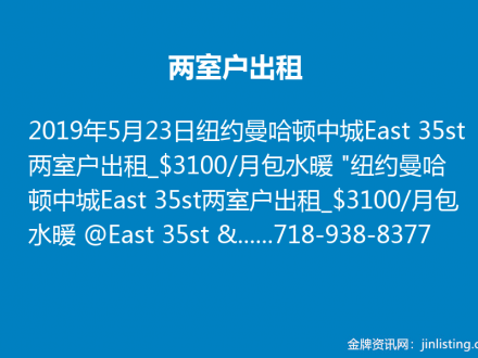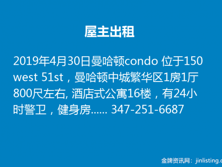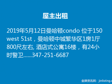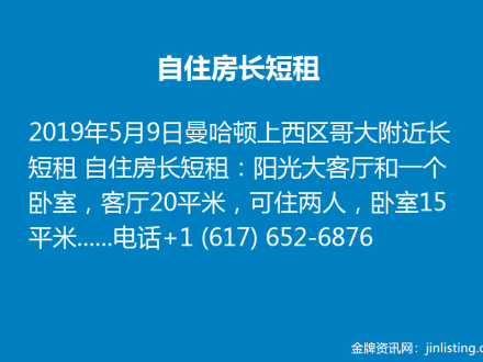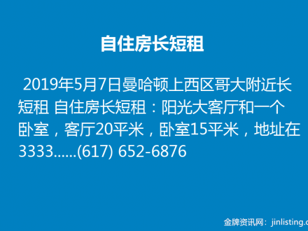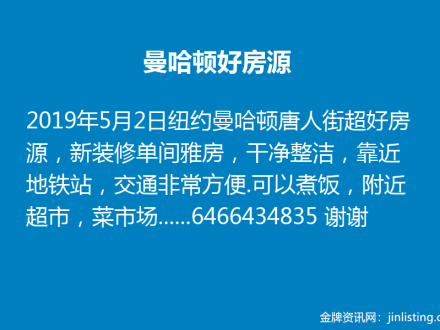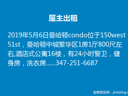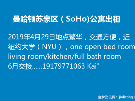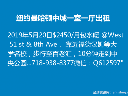 纽约市区各种价位出租房源信息_Wendy每天更新