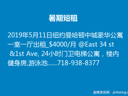 暑期短租:纽约曼哈顿和皇后区暑期短租
