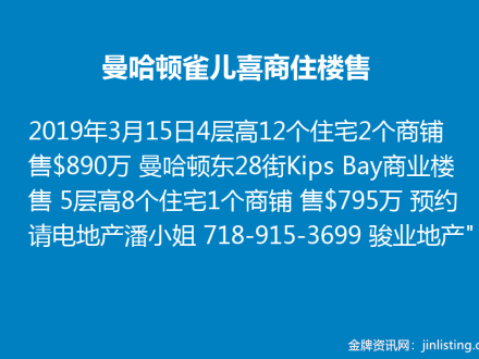 曼哈顿雀儿喜商住楼售 718-915-3699
