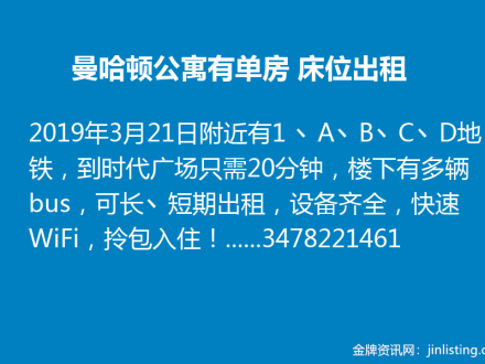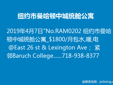 纽约市曼哈顿中城统舱公寓 718-938-8377