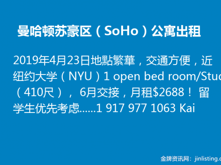 曼哈顿苏豪区(SoHo)公寓出租 1 917 977 1063