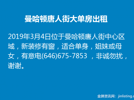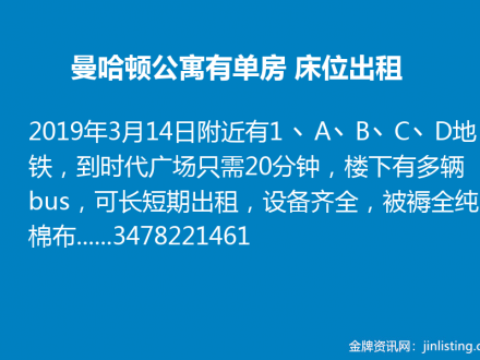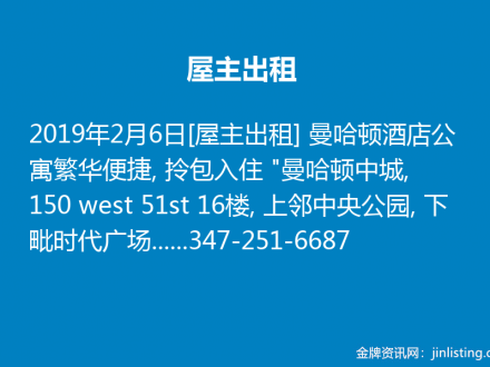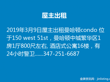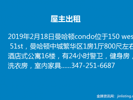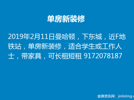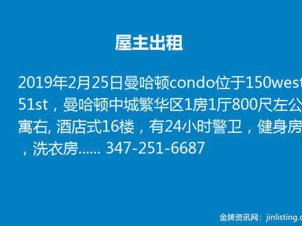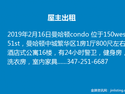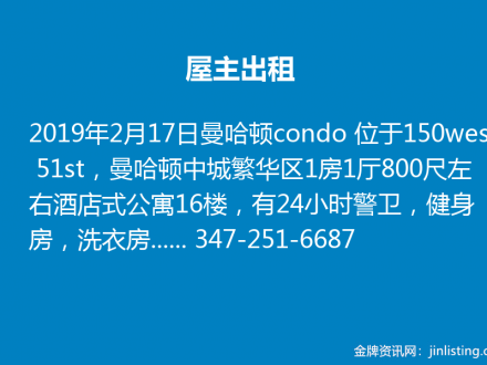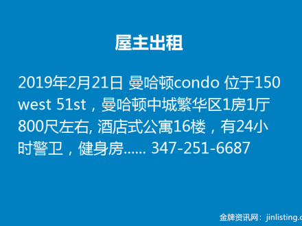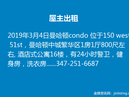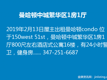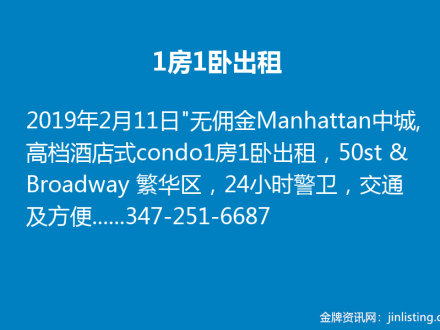 曼哈顿中城繁华区1房1厅 347-251-6687