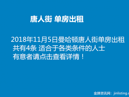 曼哈顿 唐人街单房出租 3条