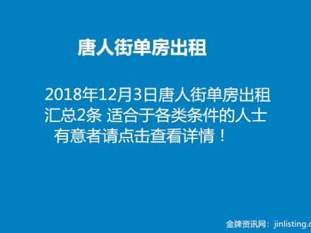 唐人街单房出租 2条