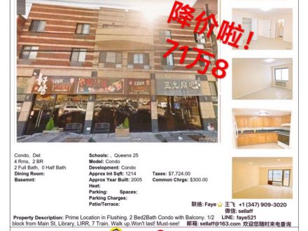 法拉盛緬街 Open House 公展 出售 2房一厅2卫浴