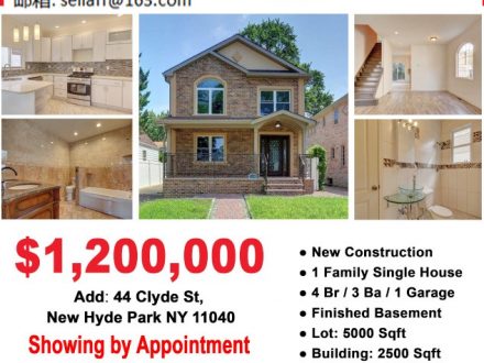 长岛新建全新装修一家庭,拎包入住,4卧室/3卫,2层+地下室+一车库,120万,5000平方尺