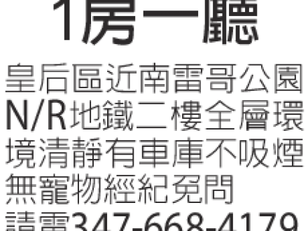 一房一廳 347-668-4179