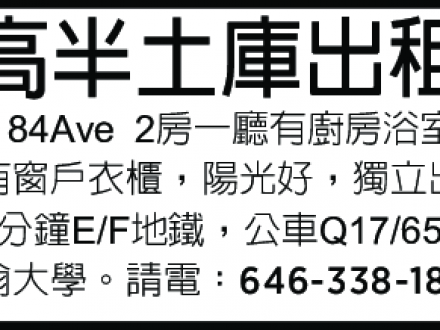 半土库 皇后区 Jamaica 169St 84 Ave 2房1厅