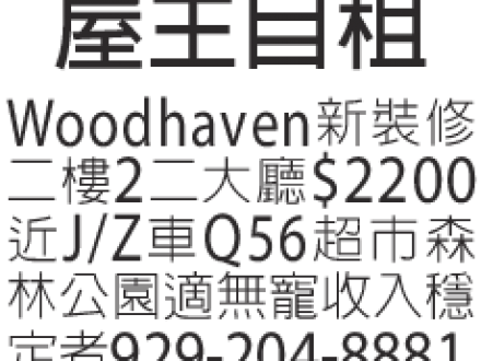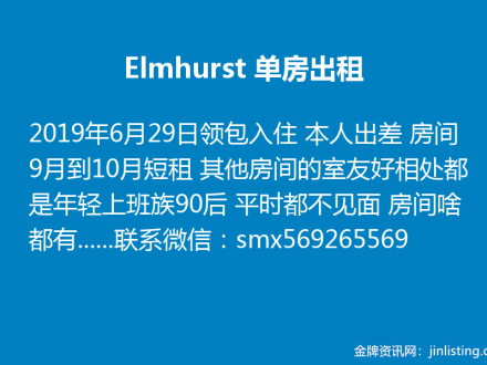 富兰克林和幽宁交界处有单间短期出租、交通便利很安静、干净卫生有网络、家具齐全、房东好说话。单人$25、双人$35,有意者请联系516-343-6785黄女士。...