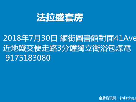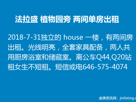 法拉盛 缅街医院 植物园旁 两间单房出租 (646) 575-4074