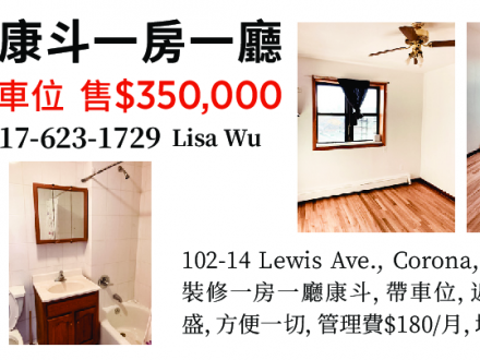 周六日 公展 法拉盛35大道和Parsons Blvd 大一房一厅已改两房一厅$328,000