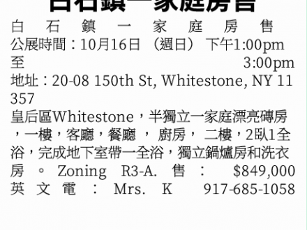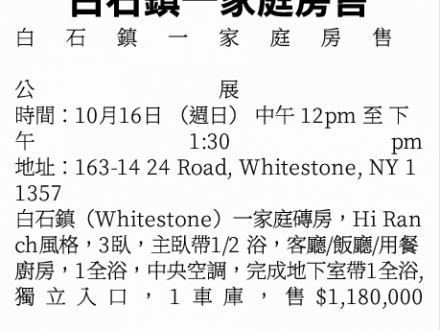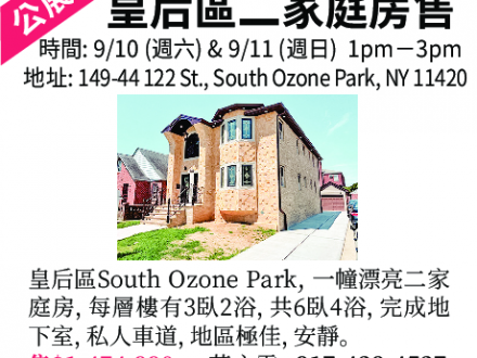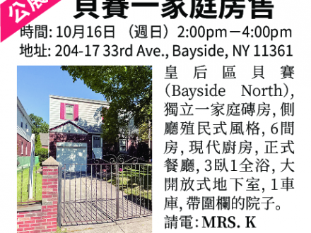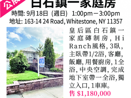 **周日 公展**法拉盛 三卧二浴康斗$678,000