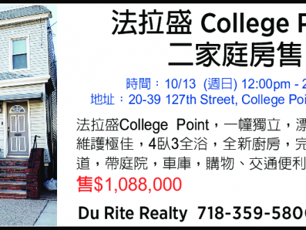 OPEN HOUSE 法拉盛 College Point 718-359-5800