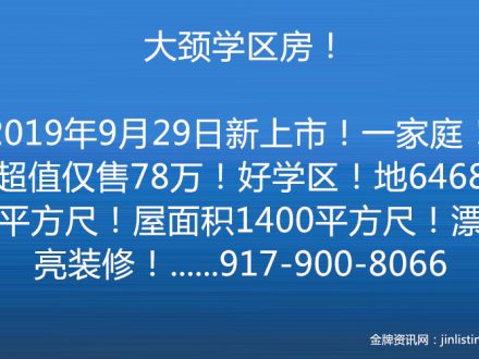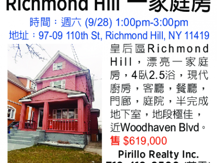公展 -Richmond Hill 一家庭房售718-418-9500