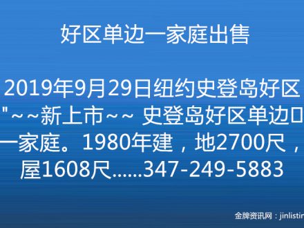 纽约史登岛好区单边一家庭出售 347-249-5883