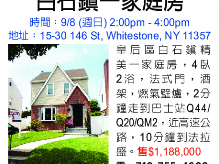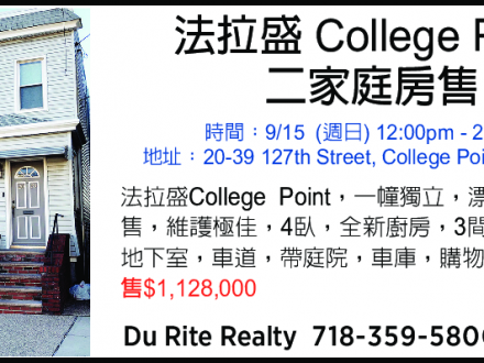 法拉盛 College Point 二家庭房售 (圖附) 718-359-5800