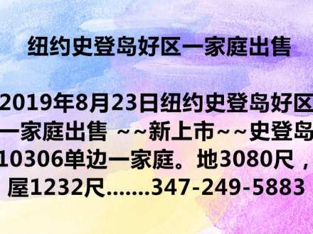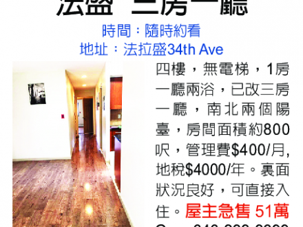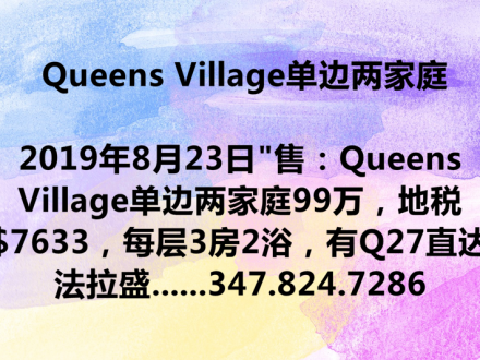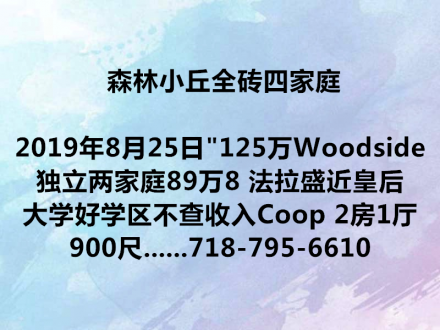 2019年8月17日: 公展法拉盛42大道和Colden街二卧coop售$489000