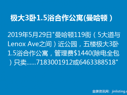 极大3卧1.5浴合作公寓(曼哈顿)7183001912