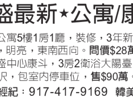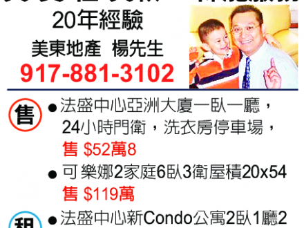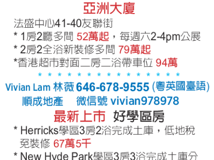 亚洲大厦 法拉盛好学区房出售 718-709-6130