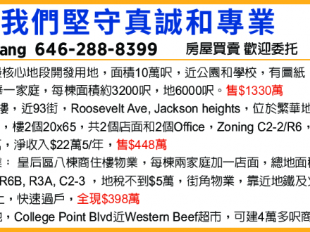 法拉盛市中心商業地產出售, 近北方大道凱斯戲院,共三層100%商业樓售