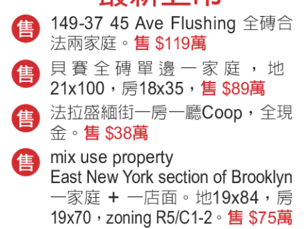 ⭐出售⭐最新纽约房源信息 516-545-9999