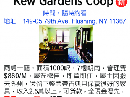 不查coop法拉盛41大道和144街二房一厅$356,000.