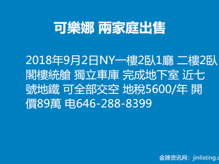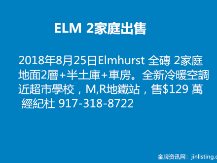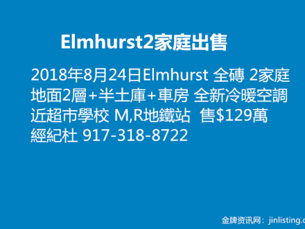 *******ELM.全磚吉屋自售***718-424-6408 或 347-421-7504