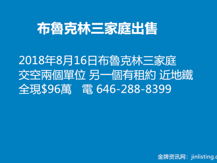 布碌崙2家庭 屋主自售 $105萬 (週日公展)下午1:00至4:00pm。