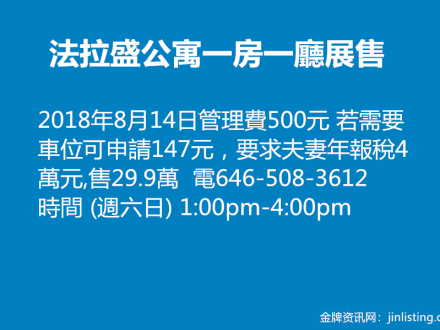 法拉盛 海灣豪庭房屋公展 646-288-8399