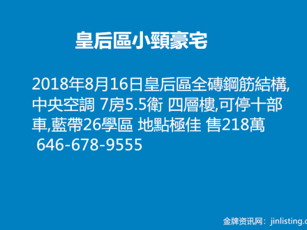 皇后區小頸豪宅 最佳學區 646-678-9555