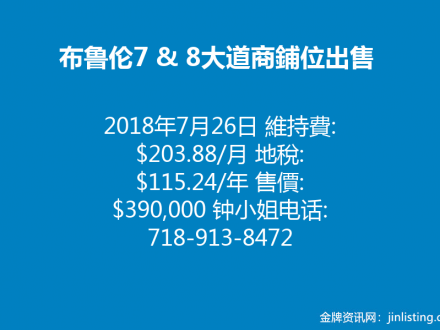 2018年7月26日布鲁伦7 & 8大道 鋪位出售 (718)913-8472