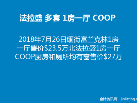 2018年7月26日 法拉盛3房Coop48万 2家庭119万 贝赛1家庭95万 Corona康斗59万9