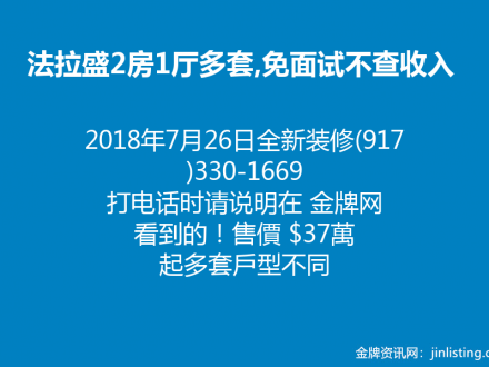 2018年7月26日 最新上市,法拉盛68Ave完全不查coop出售