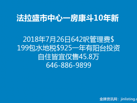 2018年7月26日 法拉盛中心康斗出售2010年新盖