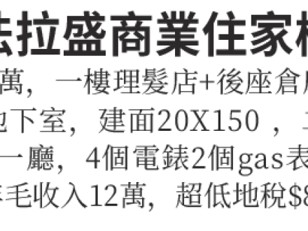 法拉盛商業住家樓售價188萬