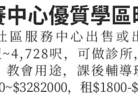 Bayside貝賽中心優質學區旺鋪: 四套社區服務中心出售或出租