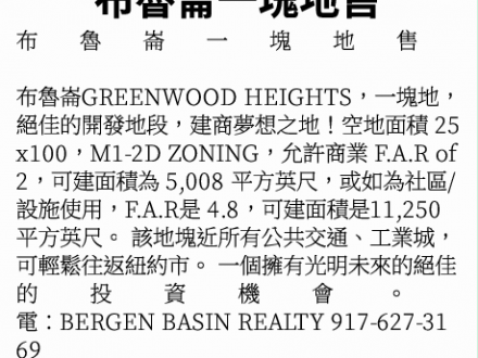 布魯崙一塊地售