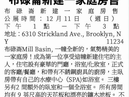 12月6日 布鲁克林房屋出租