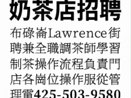 奶茶店招聘