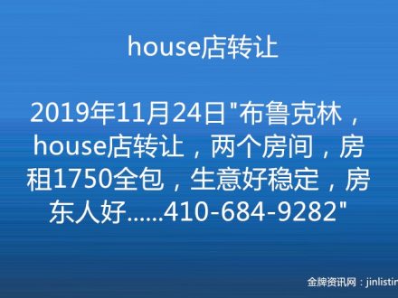 house店转让 410-684-9282