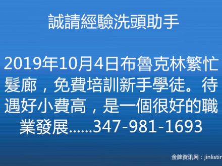 誠請經驗洗頭助手 347-981-1693