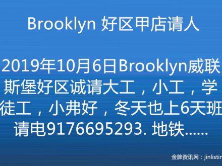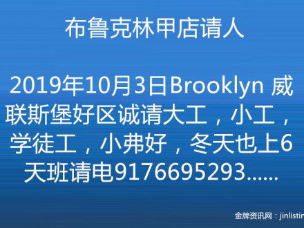 布鲁克林甲店请人