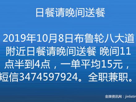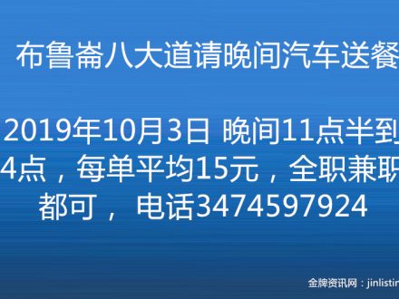布鲁崙八大道请晚间汽车送餐 3474597924