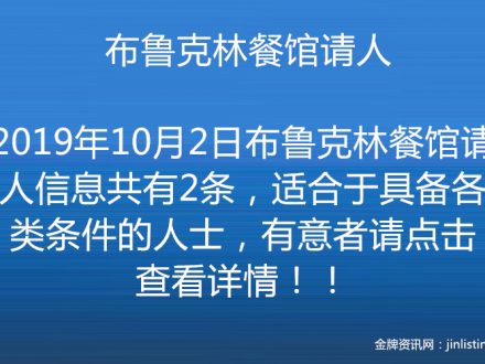 布鲁克林餐馆请人