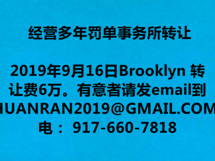 Brooklyn 经营多年罚单事务所转让 917-660-7818