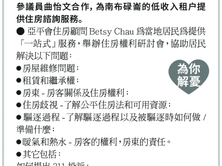 松柏之家多元社會服務中心 提供住房諮詢服務