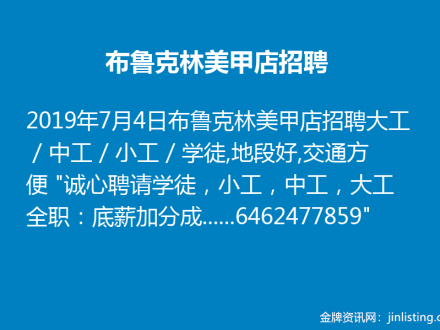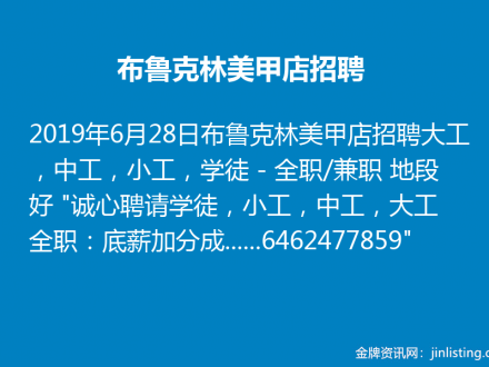 布鲁克林美甲店招聘 6462477859
