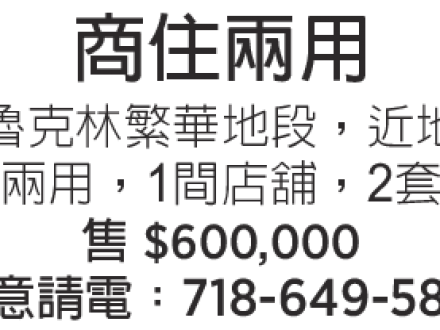 布碌崙八大道兩家出售 347-614-6342