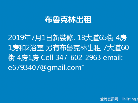 布魯克林出租 347-602-2963