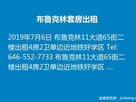 布魯克林套房出租 646-552-7733
